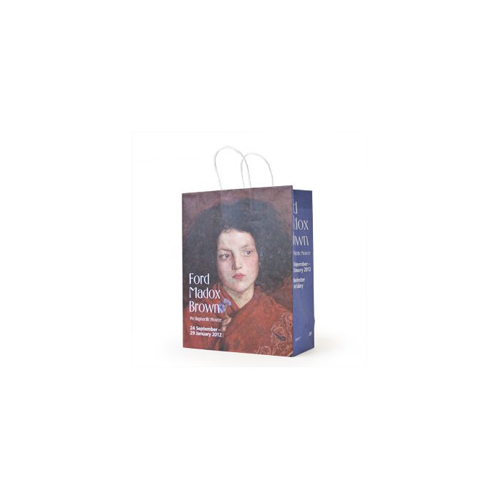 We designed this bag for Manchester's Ford Madox Brown exhibition. Manchester Art Gallery sent us the exhibition catalogue and we then came up with five designs using images that we felt would work well on a paper carrier bag. Manchester's designers then applied the finishing touches. We think the end result is a beautiful bag. The bag is designed to hold the exhibition catalogue. Specification as follows;